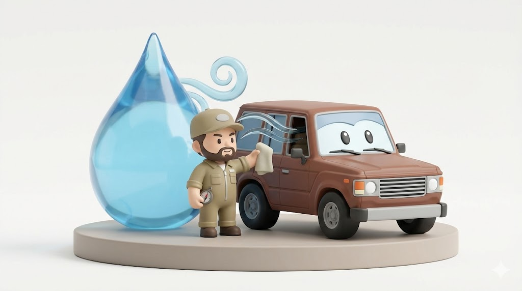 換気なしでは車内は水浸しになる