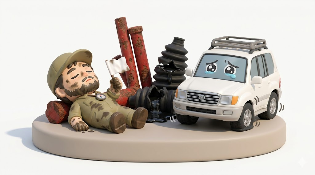 ランクル100の足回りは本当にシビアです。「とりあえずバネだけ変えればいいや」という80系のノリで弄ると、確実に痛い目を見ますよ。
