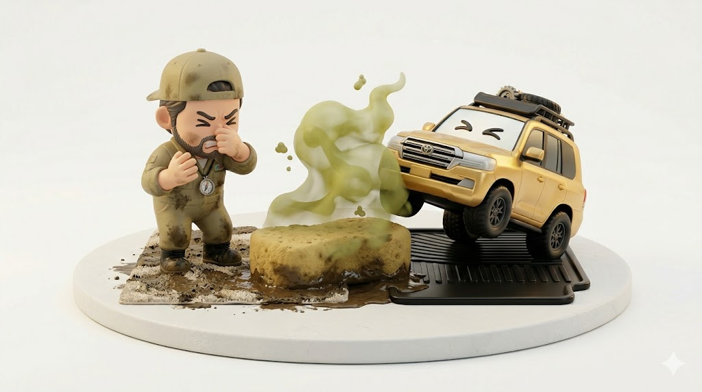 ランクル200の純正フロアマット(約8万円)は泥と悪臭の温床になる