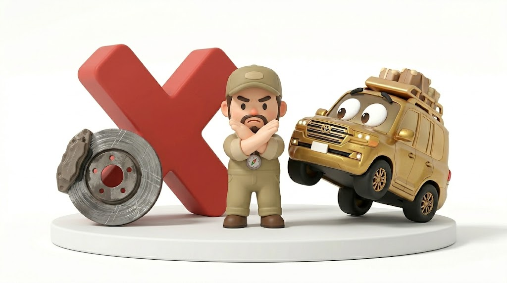 - 巨体を確実に止めるため、格安アジアンタイヤは避け「国産トップ銘柄(ブリザック等)」を選ぶ。