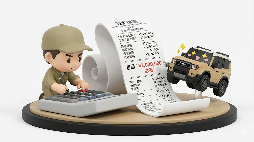 ディーラーの下取り査定を鵜呑みにしていませんか? 下取り額が適正かどうかを知らずに契約するのは、目隠しで株を買うようなものです。