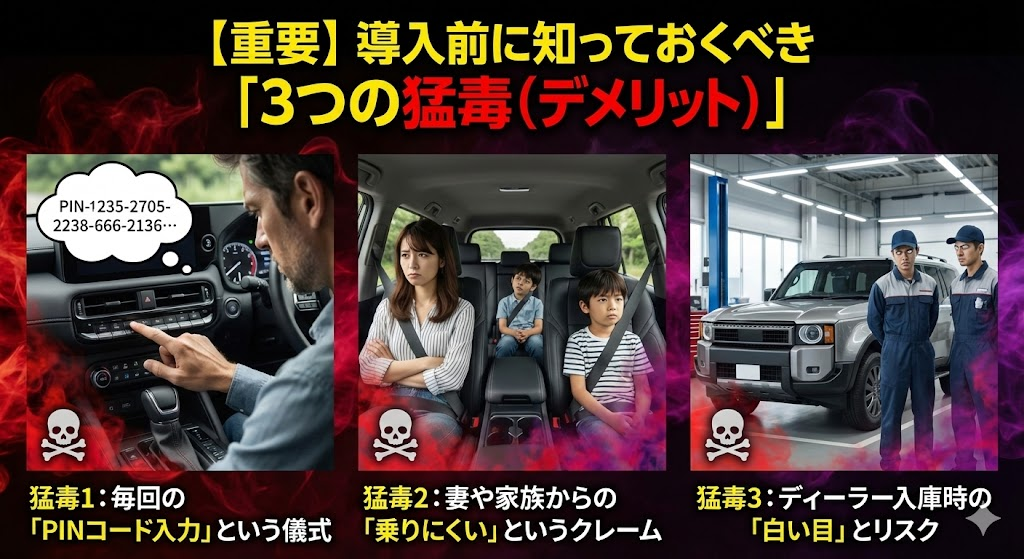 • ただし、PINコード入力の手間ディーラー対応のリスクという「」を飲む覚悟が必要。