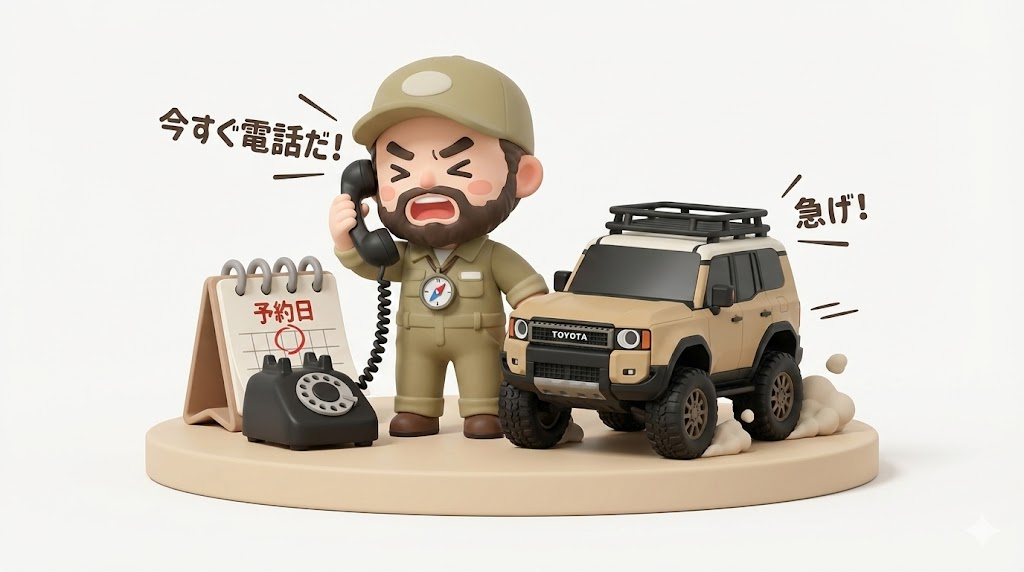 納車日が決まっていなくても、予約枠を押さえてください。人気店は数ヶ月待ちが当たり前です。