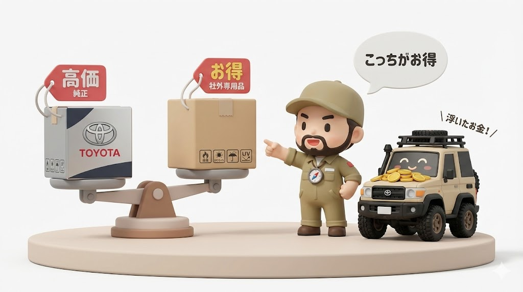 トヨタ純正用品は確かにフィッティングは完璧ですが、価格と機能のバランス(コスパ)においては社外品に軍配が上がるケースがほとんどです。