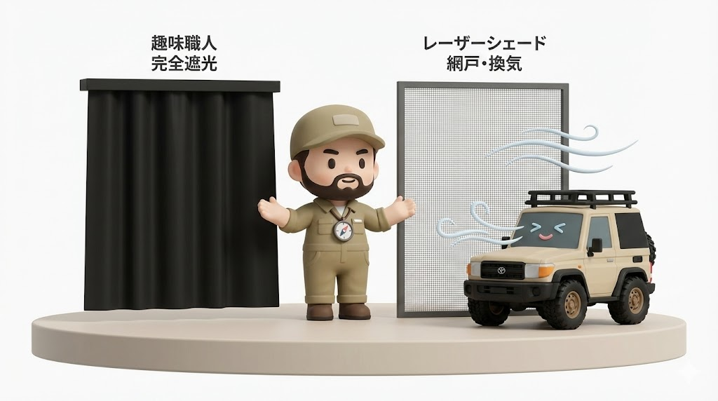 - 推奨: 車中泊なら「趣味職人」、普段使いなら「レーザーシェード」が正解です。