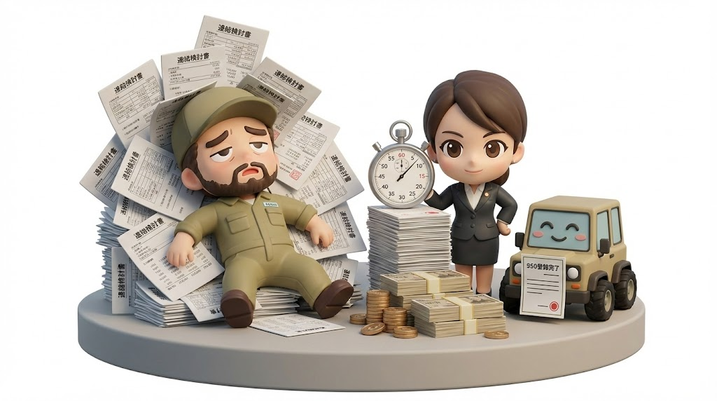 - 950登録は納車前に済ませましょう。営業マンに知識がないなら「書類作成代行」で時間を買うのが賢い選択です。