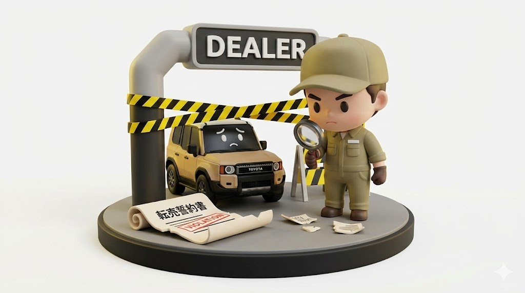 「転売誓約書」違反の車両は、最寄りのディーラーから整備入庫拒否(出禁)される可能性が高いです。 - 対策: