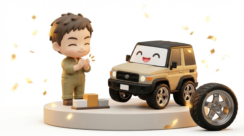足元が決まれば、スーパーの駐車場で愛車を振り返る回数が確実に増えます。「俺のランクル、やっぱり一番カッコいいな」とニヤける瞬間。これこそがオーナーだけの特権です。