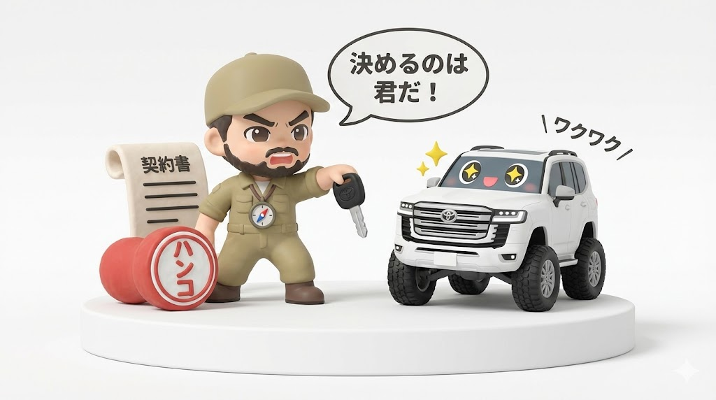 私はランクルを選びました。それは、この車が単なる移動手段ではなく、人生の可能性を泥臭く広げてくれる「相棒」だからです。もし、あなたがこちらの世界(沼)に来てくれるなら、これほど嬉しいことはありません。