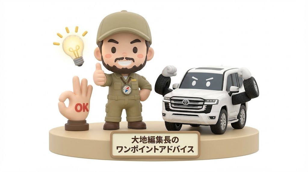 ランクル250との差別化のため、300系はあくまで「ラグジュアリー路線(角目・メッキ)」を貫くと予想されます。もし丸目が好みなら、迷わず250系を検討すべきです。