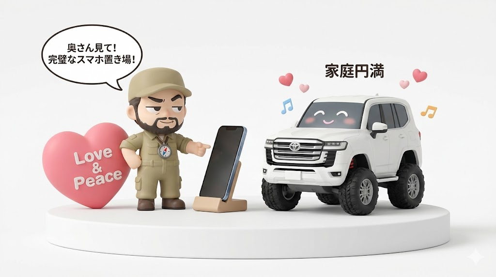 そして、奥様にも「ほら、これでスマホ置けるよ」とドヤ顔で教えてあげてください。それが、長くランクルに乗り続けるための「家庭内政治」でもあります。