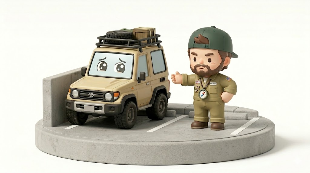 本記事では、歴代ランクルを乗り継ぎ、街中の激狭駐車場で何百回と冷や汗をかいてきた私(編集長・大地)が、カタログには載らない「取り回しの悪さの現実」を暴露します。