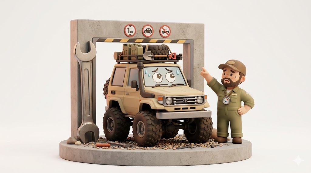 本記事に掲載されているサイズデータや駐車の可否、リフトアップ後の全高計算については、車両の個体差や測定環境により異なる場合があります。最終的な購入判断やカスタム、駐車場の契約は必ずご自身で実車確認を行い、自己責任で行ってください。本記事の情報に基づき発生した損害について、当サイトは一切の責任を負いかねます。