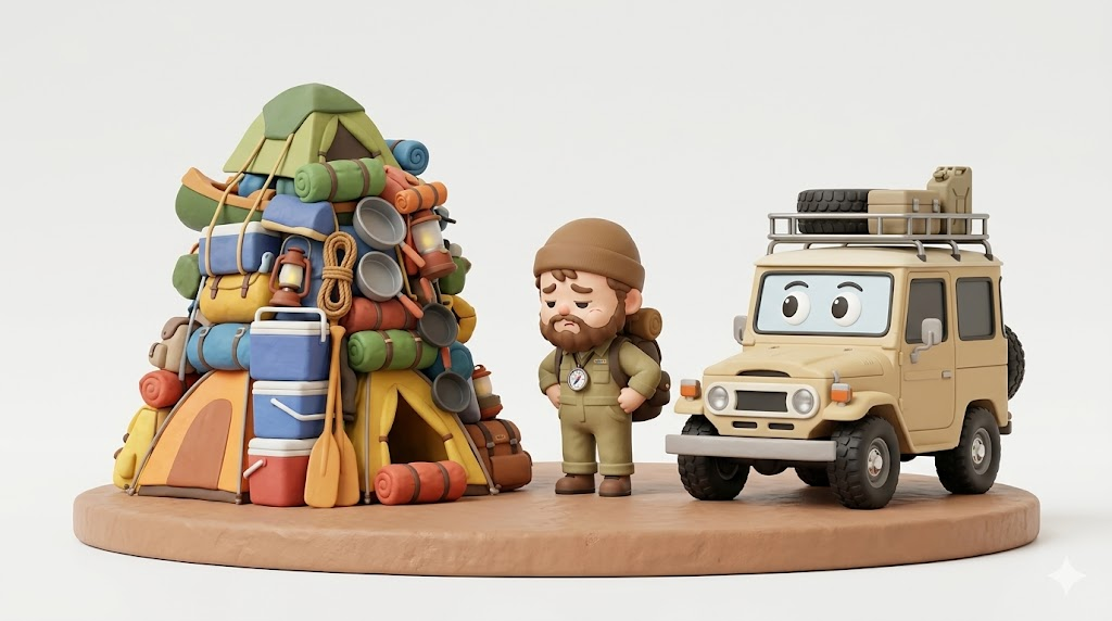 ランクル70のように「家族4人とキャンプ道具フルセットを飲み込んで出発する」といった使い方は物理的に不可能です。