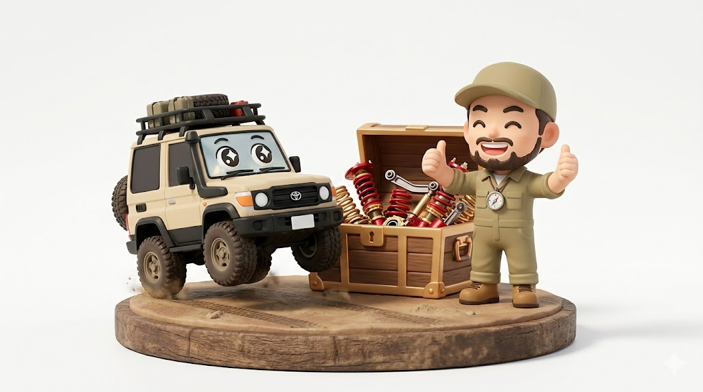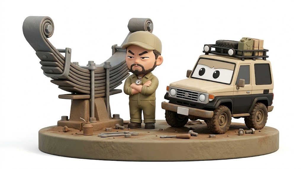 リアが板バネ(リーフスプリング)であるランクル70において、安易なリフトアップは「激しい突き上げ感」と「車検落ち(違法改造)」を招くリスクが極めて高いです。