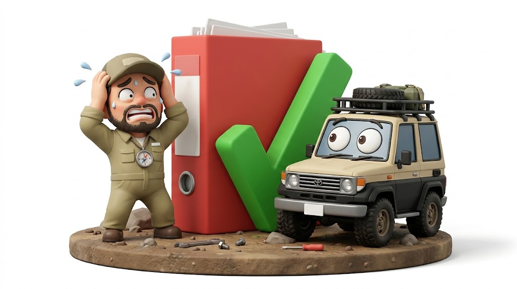 まずは、実績のあるメーカー(キープスラント等)の「強度計算書付きフルキット」を調べ、構造変更手続きまで丸投げできる四駆専門のプロショップに相談予約を入れてください。