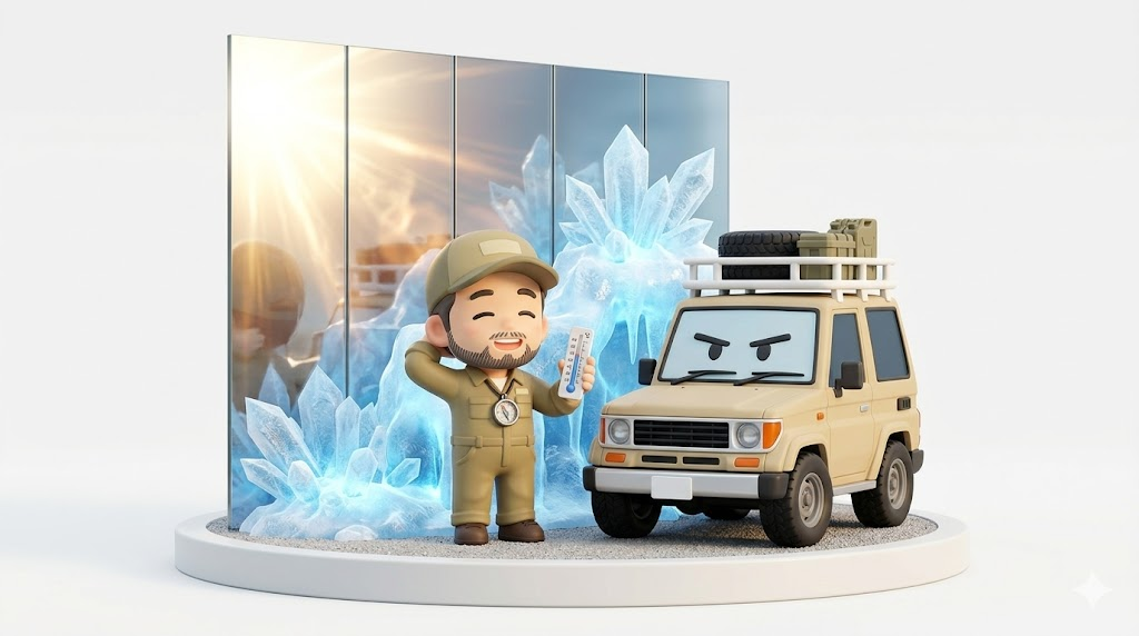 ランクル70に車種専用サンシェードが必須な理由【垂直ガラスの断熱対策】