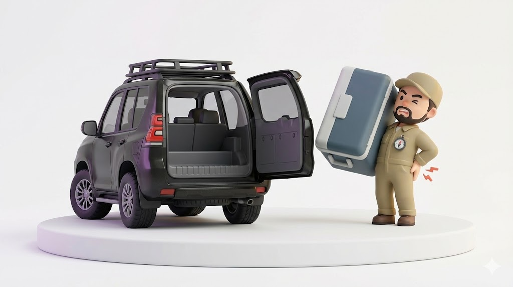 狭いスーパーの駐車場では、高い位置まで重い買い物袋を持ち上げるのに苦労するでしょう。
