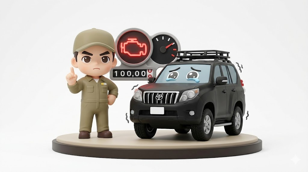 彼らは10万kmを超えたプラドが、工場のリフトに上げられ、インジェクター交換やDPF洗浄で数十万円の整備を受けている姿を裏で見ています。